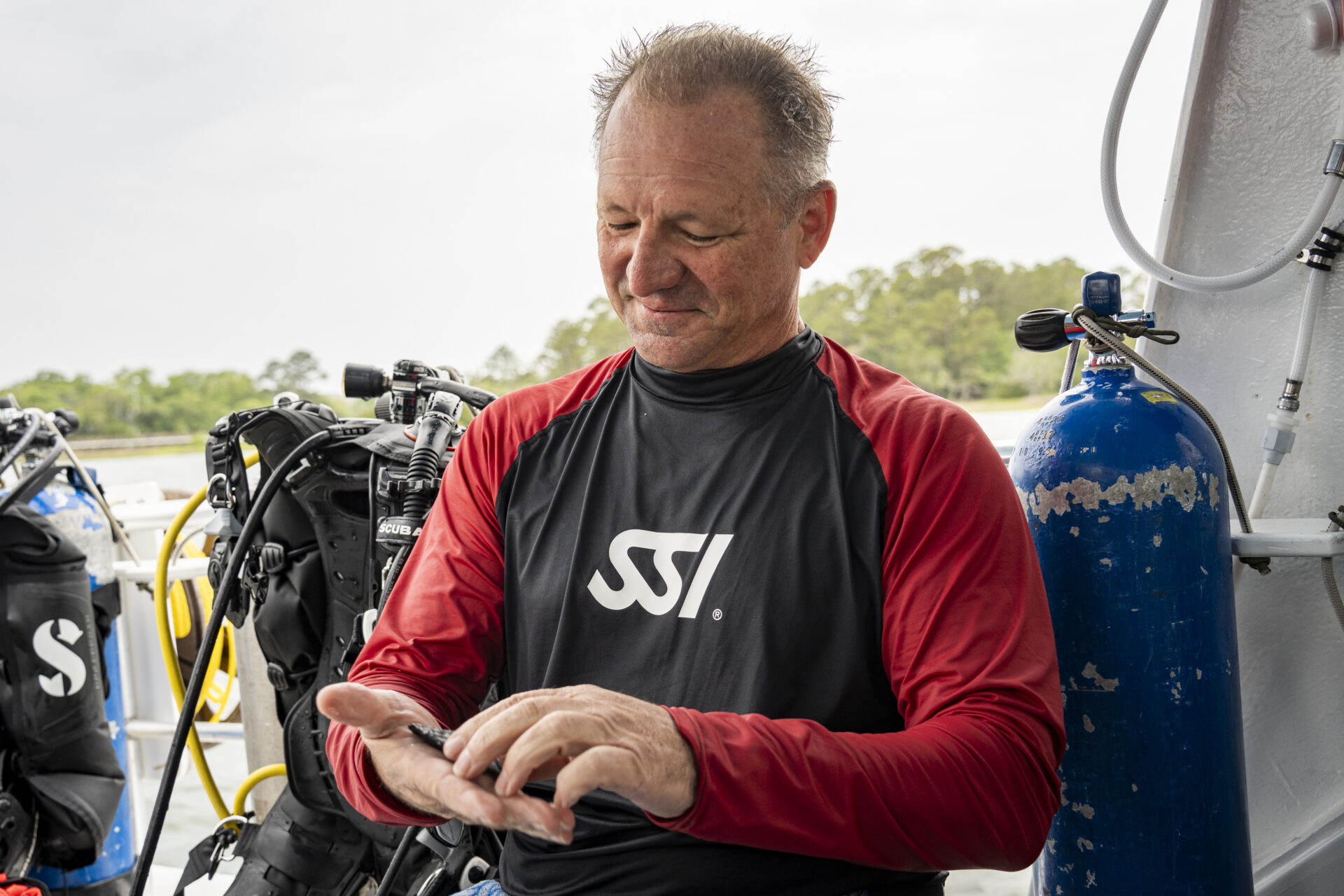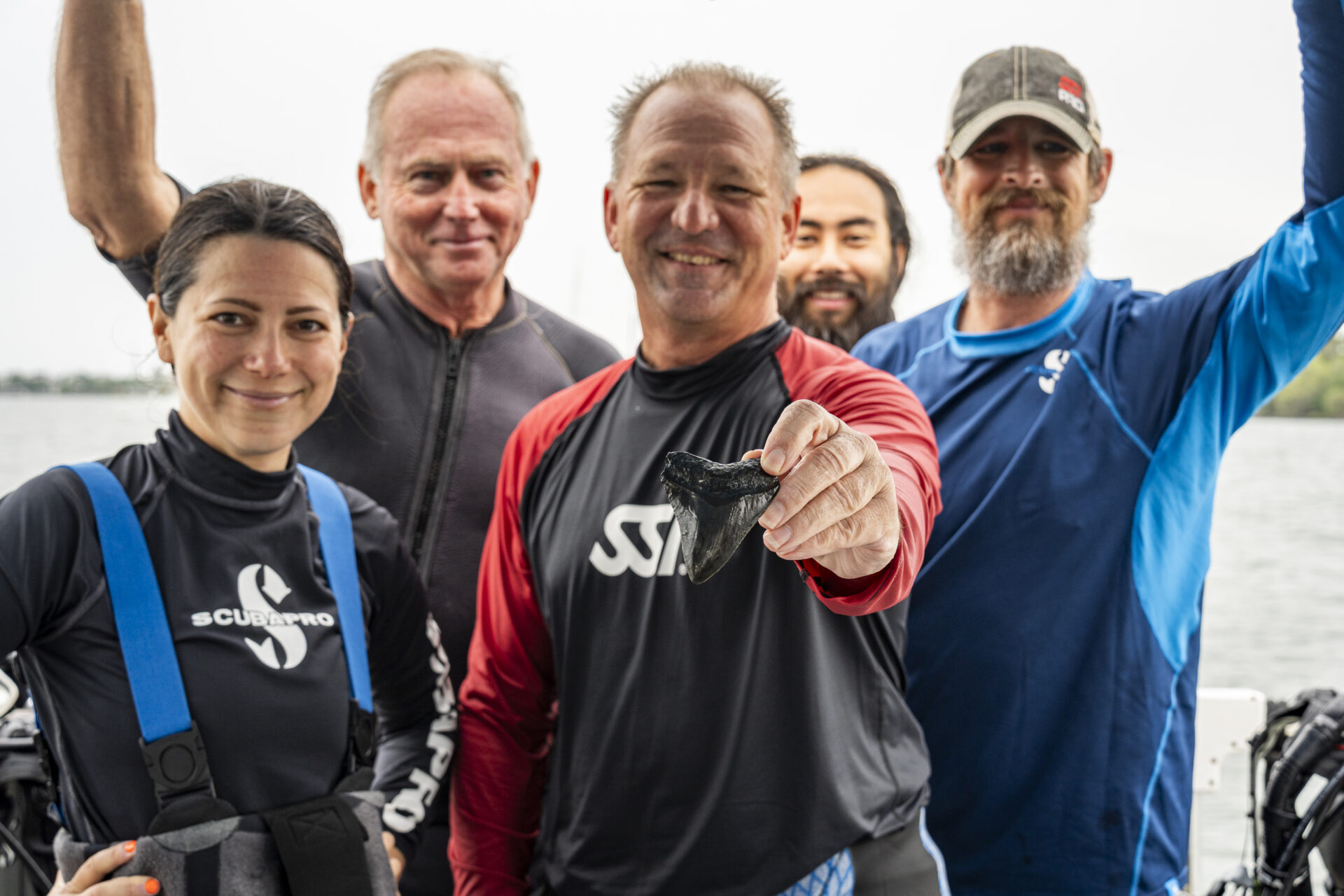 Leading our South Carolina dives was Jeffrey Eidenberger, a Charleston local, U.S. Navy veteran, and SSI Instructor Trainer that runs Carolina Dive Locker, with more than 30 years of diving experience. Then there’s the rest of the dream team – a tactical powerhouse fossil-diving crew composed entirely of ex- and active-duty military divers, including Walker Townsend (a U.S. Coast Guard Master Captain), Jesse Lang (a scuba instructor, commercial diver, and ROV operator who has the side-scan sonar devices to help find fossil beds in the region), Jason Stotko (another instructor with deep technical range), Brian Heinze and Dale Poston (both Assistant Scuba Instructors).