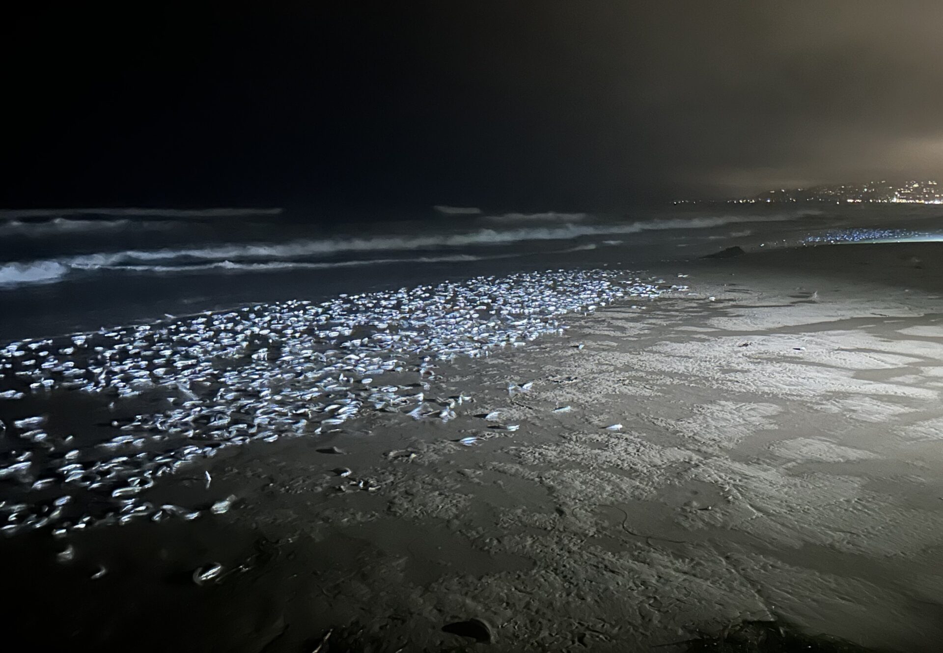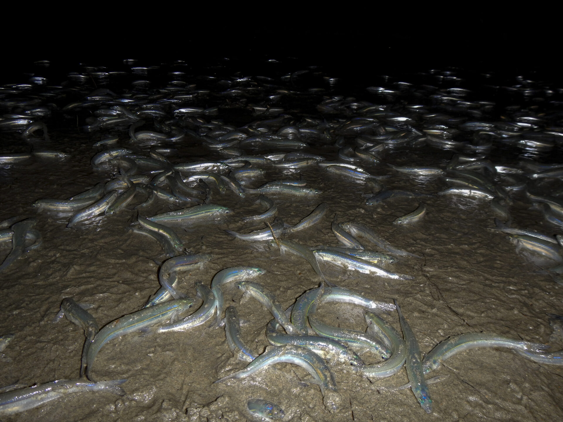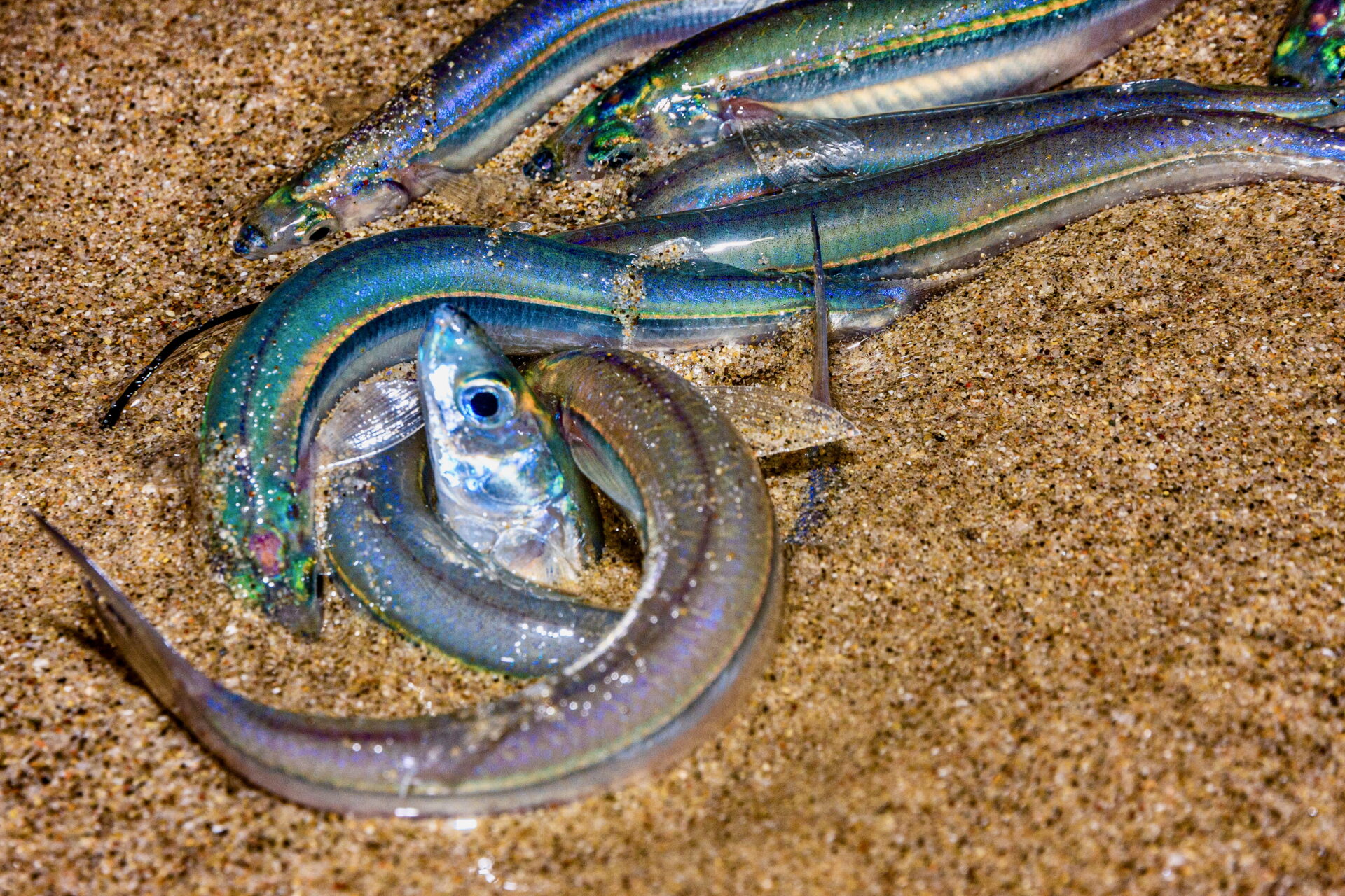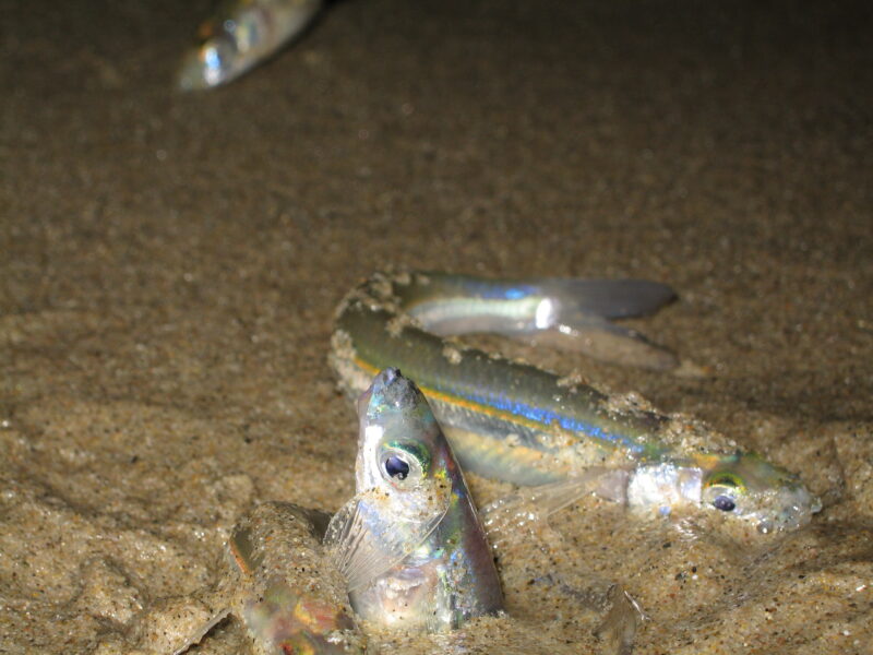 If you’re lucky and nature cooperates, you can see these small silvery fish emerge from the waves off a number of California beaches the night following a new or full moon. On some nights, no fish appear, but on others, they number in the tens of thousands, mirroring the stars in the night sky.