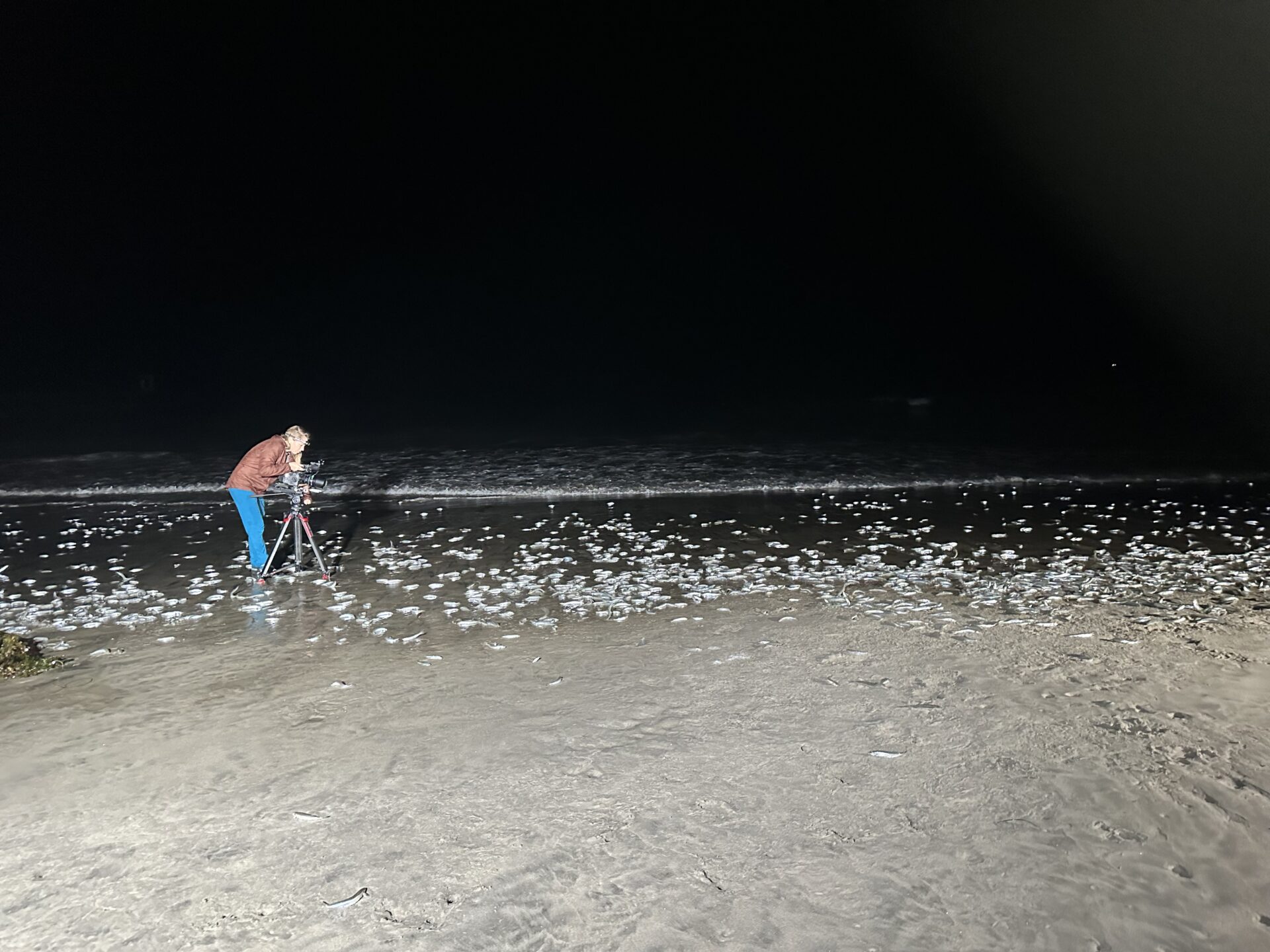 With the help of many organizations, including Project Pacific and the Birch Aquarium at Scripps, we asked people to learn how to observe grunion runs. To my surprise, hundreds of people responded. We held evening workshops to show photos and videos in presentations, and listed the locations and nights involved. We demonstrated how to report data through an online portal, back in the early 2000’s when this was quite unusual.