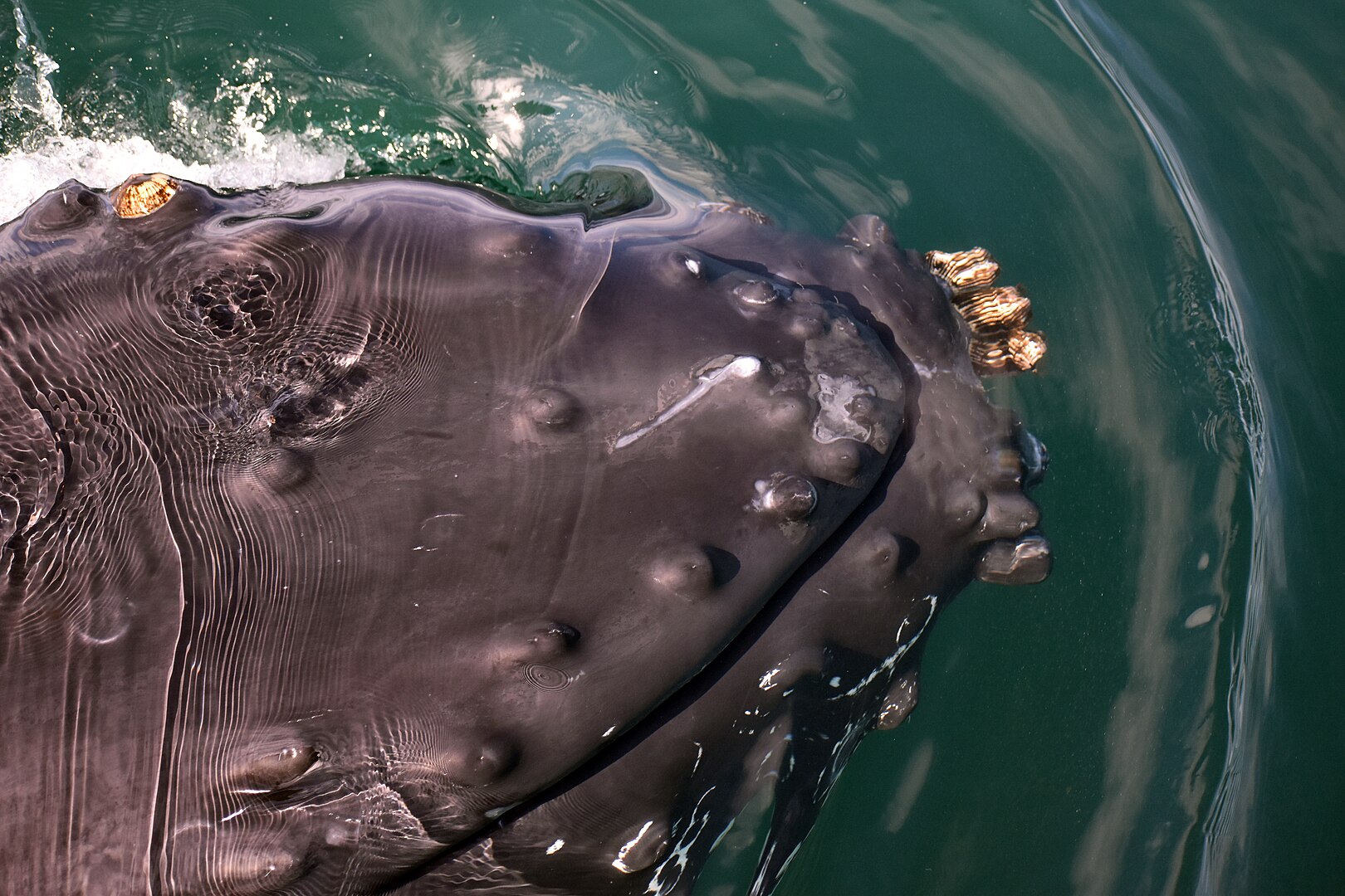 As a whale dives alongside us, Dr Cheeseman points to a deep white scar on its peduncle, just forward of the whale’s tail flukes. “That notch there was an entanglement scar,” he tells us. “It’s one of the major threats to these animals.”