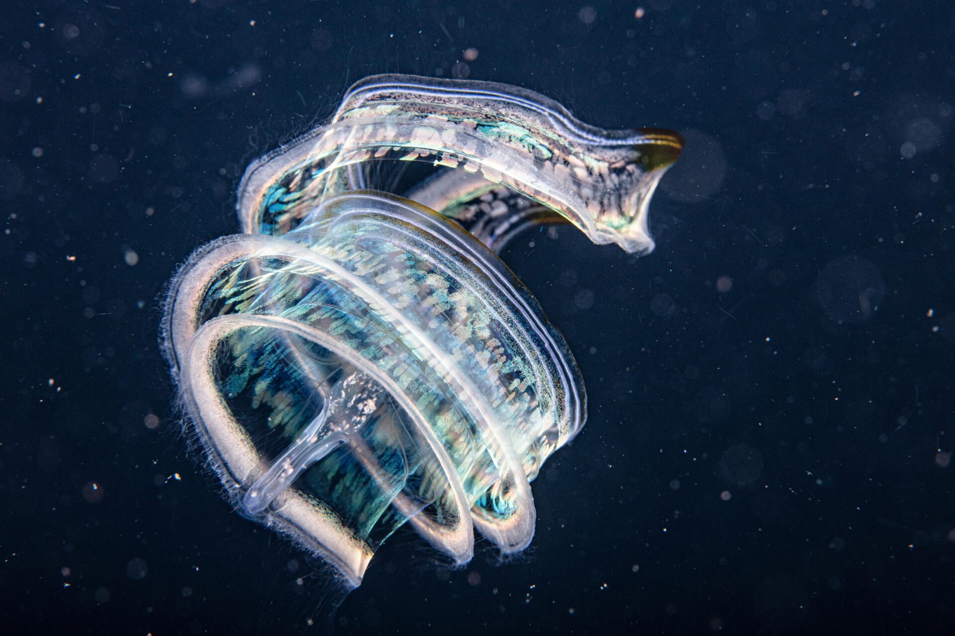 Ctenophores occupy a unique place in the tree of life. They belong to one of the oldest known animal lineages – predating even sponges – and are found throughout the world’s oceans, from sunlit coastal waters to the deepest trenches. Composed of roughly 95% water, they are extraordinarily delicate; many collapse almost instantly when removed from their environment, making traditional net sampling ineffective or destructive.